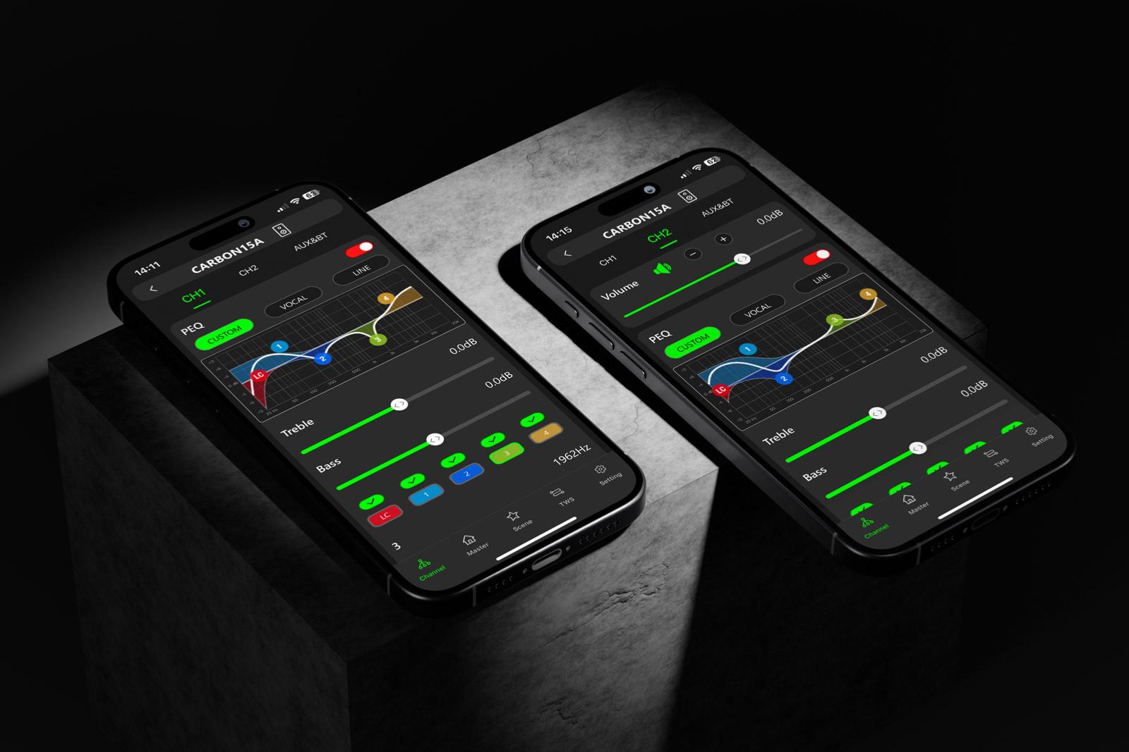 Enceinte active 15″ + 1,35″ – 1500 W RMS avec DSP, Bluetooth TWS et application mobile (CARBONcontrol)