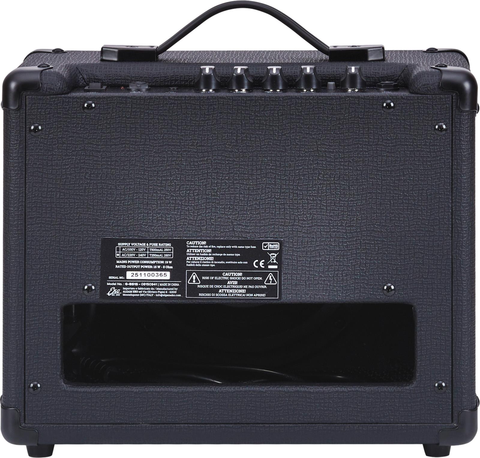 Le G-BS15 a été développé par Eko, en partenariat avec le technicien Roberto Tittarelli, afin d'offrir aux guitaristes un petit combo à transistors léger et compact pour s’exercer à la guitare électrique. Ce combo développe 15W à travers un haut-parleur de 8 pouces, et permet d’aborder des sonorités et styles de musique variés grâce à ses deux canaux (clean et drive) sélectionnable via un interrupteur, pour obtenir des sons clairs ou plus saturés.