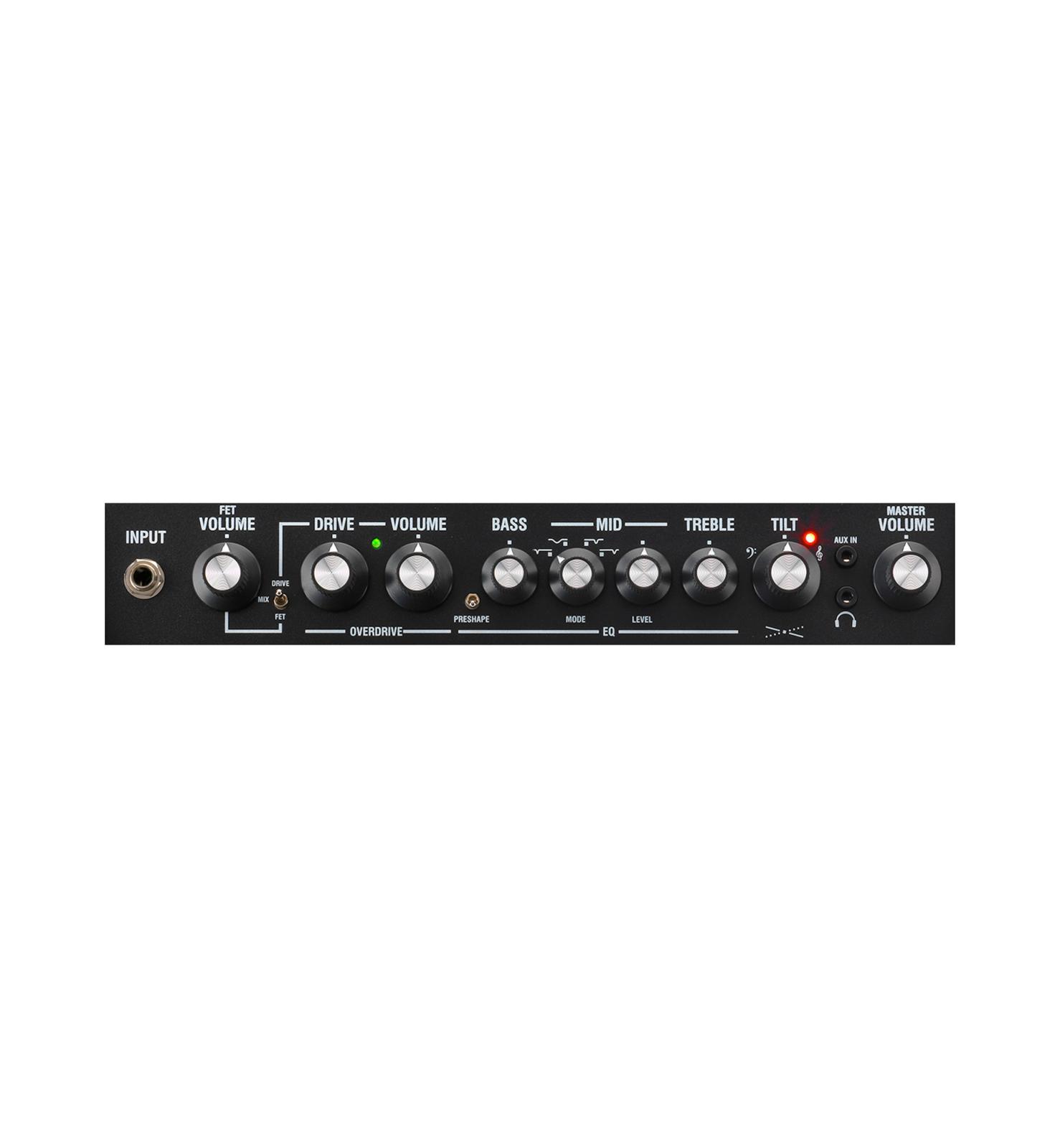 Combo basse DBF100, amplification 100W Class D, 1x HP 12" HH Blue Audio, 2 canaux mixables (FET/DRIVE) et commutables au pied grâce au FS1-Mini (optionnel), EQ 3 bandes, 4 presets Mid ajustables, fonctions TILT et PRESHAPE, volume Master, sortie XLR DI Out, sortie casque 3.5 mm, entrée auxiliaire 3.5 mm, boucle d'effet, prise footswitch,
