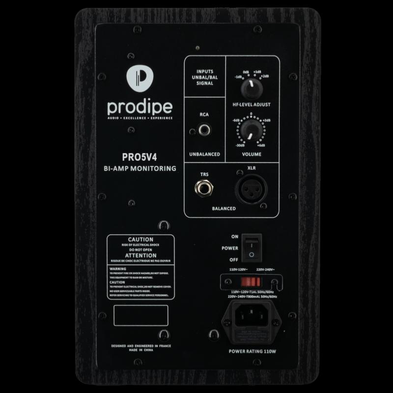 Nous avons travaillé particulièrement la neutralité et l'équilibre harmonique de nos enceintes. Les Pro5 v4 intègrent un nouveau woofer avec membrane en fibre de verre, un nouveau tweeter à dôme en néodymium et une nouvelle électronique pour encore plus de rapidité, de dynamique et de présence. Couplées avec le caisson de basse Pro 10S v4, les Prodipe Pro5 v4 vous offrent l'écoute Studio à un rapport qualité/prix sans précédent. Chaque enceinte est bi-amplifée, pour une répartition optimale de la puissance, apportant un véritable équilibre au système...