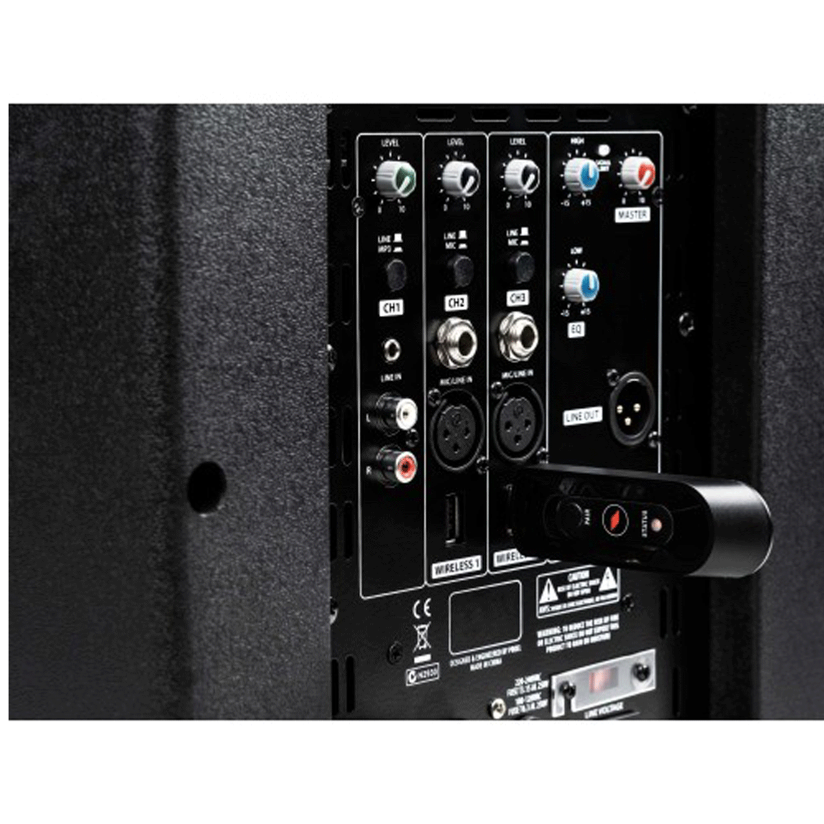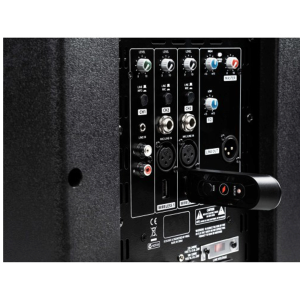 La table de mixage 3 canaux intégrée, avec commandes de niveau indépendantes et égaliseur 2 bandes, comprend également deux entrées USB pour connecter des microphones sans fil PROEL U24H ou U24B 2,4 GHz avec un récepteur USB. Ces systèmes sans fil sans tracas, disponibles à la fois avec un émetteur de poche et un émetteur de poche, peuvent être connectés aux haut-parleurs simplement en branchant le récepteur USB ultra-compact et offrent une transmission haute définition et sans interférence grâce à la technologie 2,4 GHz.